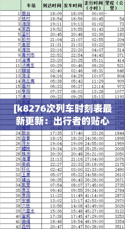 标题:[k8276次列车时刻表最新更新:出行者的贴心指南]